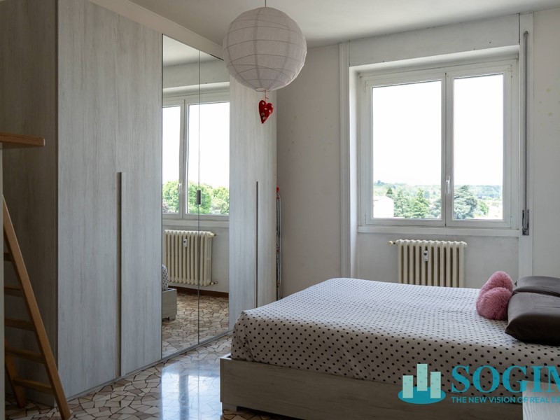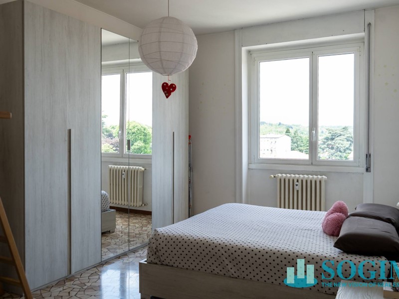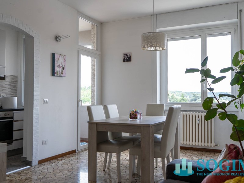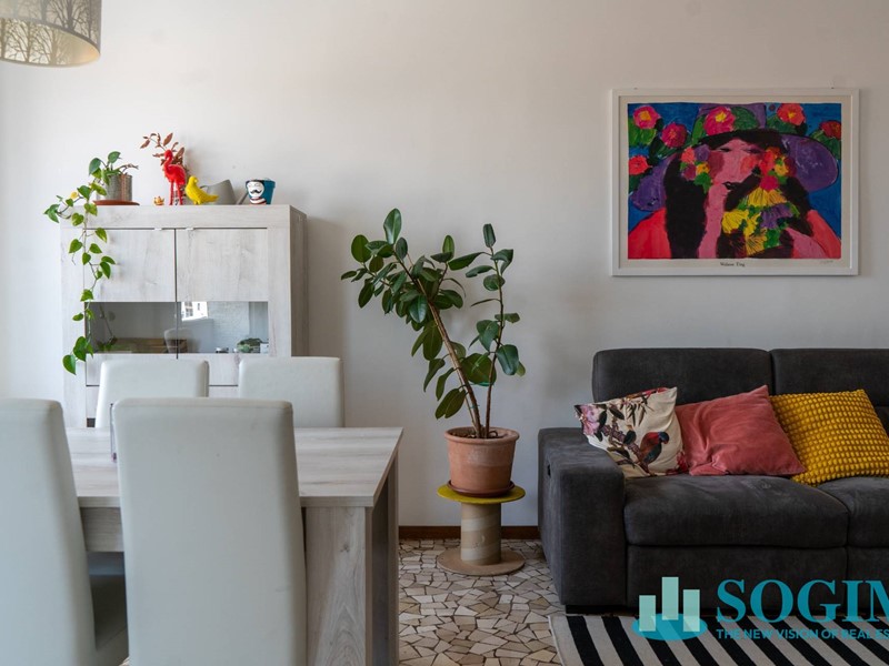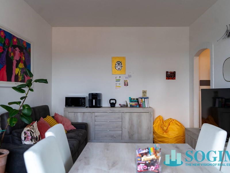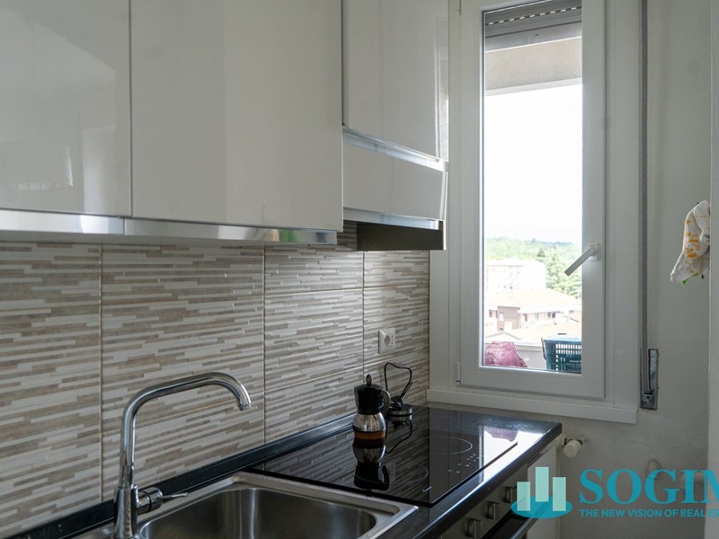 L'appartamento gode di un' esposizione nord-est ed è composto da un piccolo atrio di ingresso che permette di raggiungere il soggiorno, dotato di accesso al balconcino pertinenziale dal quale assaporare una gradevole vista sulla città, e l'angolo cottura che preserva una sua autonomia rispetto all'area living, conferendo all'abitazione carattere e una buona distribuzione degli spazi .