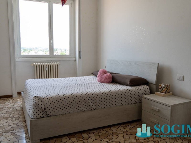Proseguendo dall'entrata si accede alla zona notte che accoglie un'ampia camera matrimoniale e il bagno finestrato .