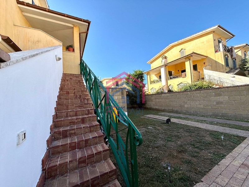 Piano terra, giardino con barbecue, posto auto da cui si accede tramite cancello carrabile e una rampa di scale esterna che permette di accedere all'abitazione.
