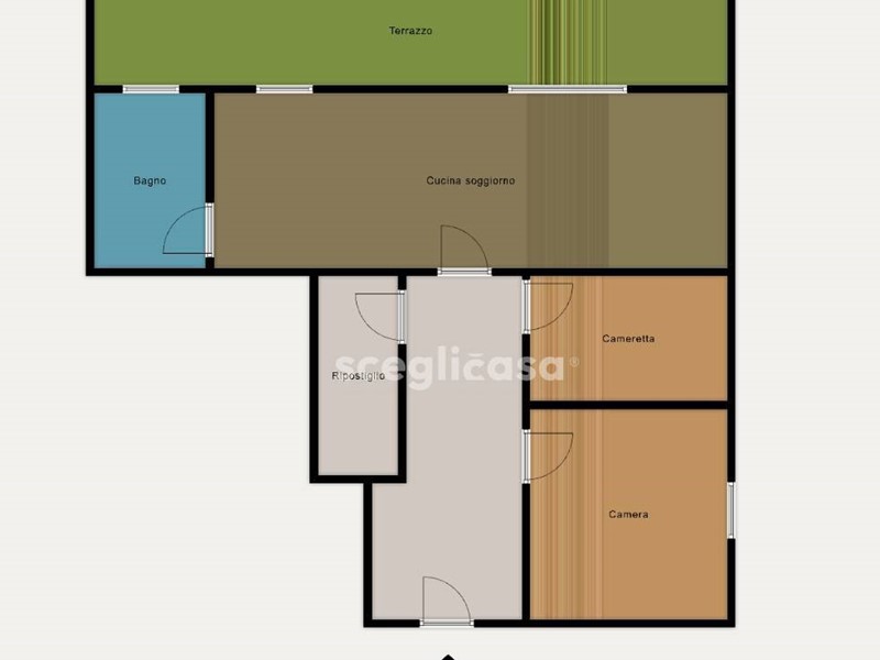 Internamente è composto da ingresso , camera da letto , cameretta , ripostiglio , cucina soggiorno , un bagno e a completare la proprietà un ampio terrazzino.