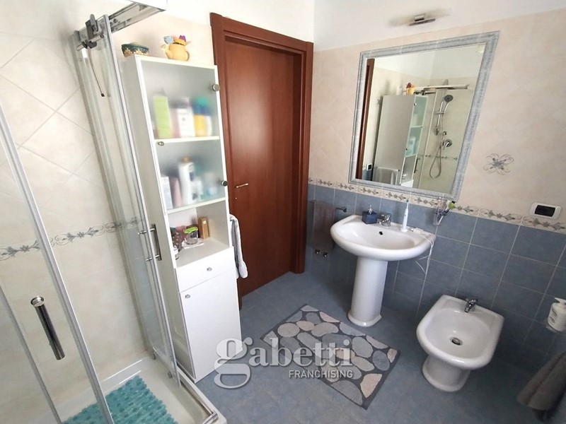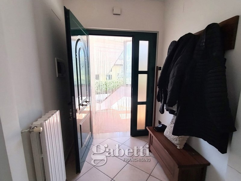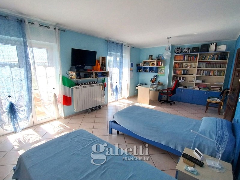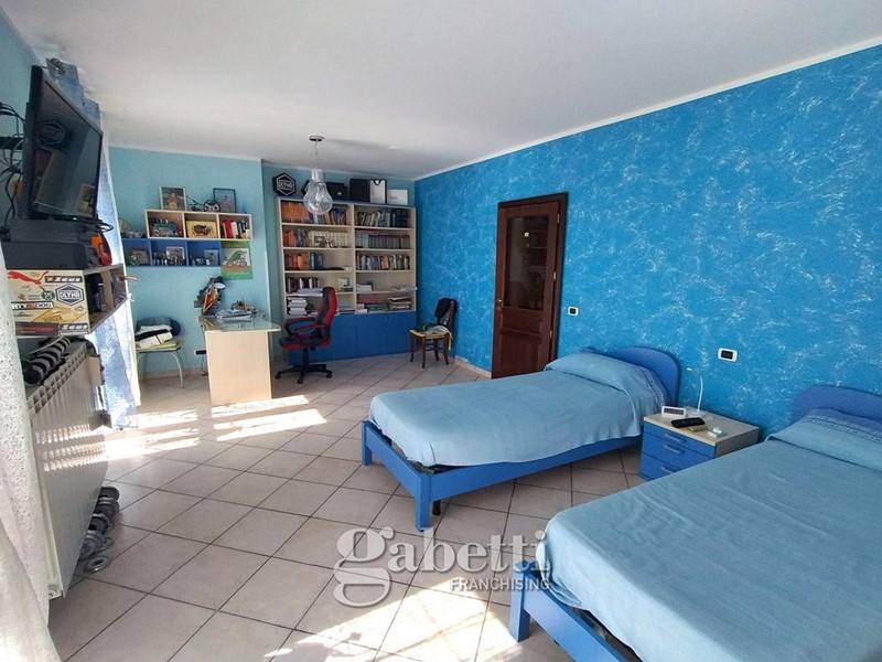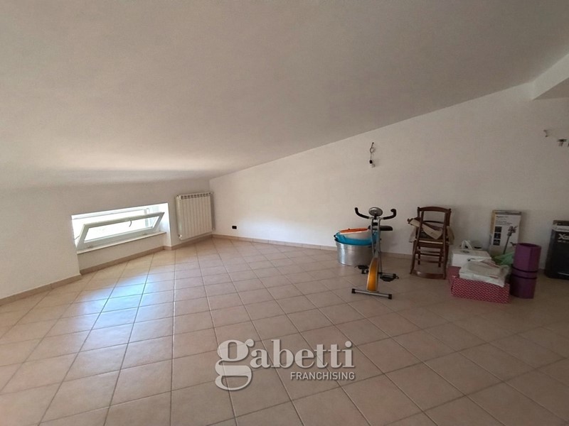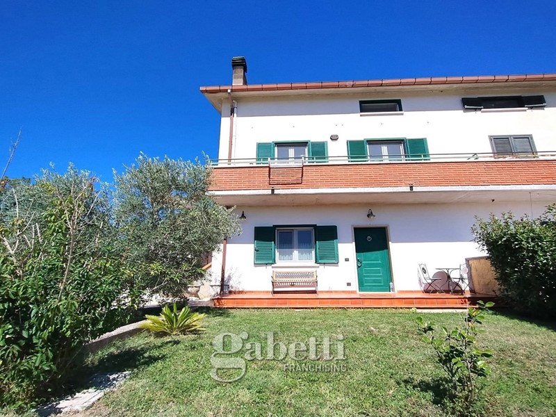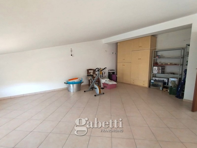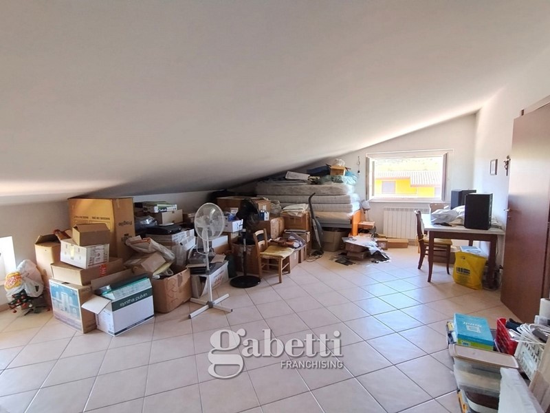 La soluzione si sviluppa su tre livelli così come segue. Al piano terra troviamo il soggiorno con angolo cottura servito da un pratico camino e dal giardino, bagno e ripostiglio. Salendo al primo piano troviamo un'ampia camera da letto con balcone, una camera matrimoniale, una cameretta, un bagno e un ripostiglio. Al secondo piano mansardato troviamo invece due spaziosi vani e un ulteriore bagno. Completa il tutto un comodo garage che confina con una pratica tettoia coperta.
