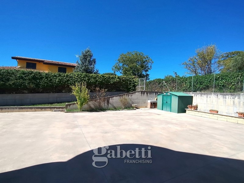Alla soluzione si accede da un comodo cancello motorizzato che apre su una strada privata e accompagna su un'area di pertinenza ad uso esclusivo.
