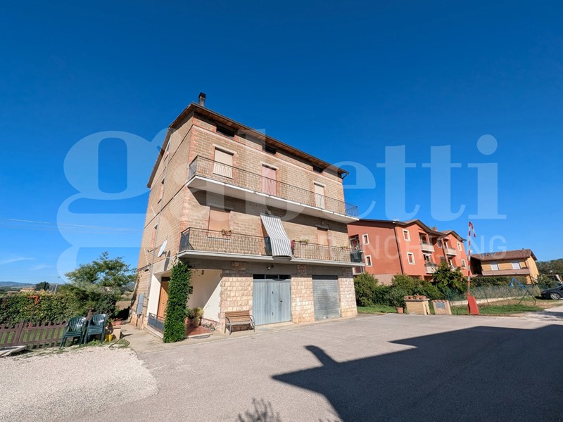 Deruta: In zona servita disponiamo di appartamento di ampia metratura posto al piano secondo di piccolo stabile senza spese condominiali. La soluzione si compone di ingresso, soggiorno con cucina a vista, tre camere matrimoniali, un bagno ed un terrazzo. A completamento della proprietà garage di 40 mq, soffitta di 80 mq e rata di terreno di 120 mq.