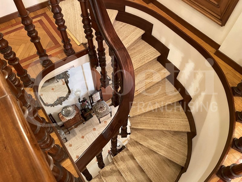 Appio Latino - San Giovanni - Nella storica Via Latina, a due passi dalle Mura Latine e dal Parco degli Scipioni, in posizione centralissima fornita di ogni servizio, proponiamo in vendita uno splendido appartamento di ampia metratura su due livelli, ai piani primo e secondo collegati tra loro da una magnifica scala interna. L'immobile è composto al primo piano da ingresso, salone doppio di rappresentanza con pavimenti in marmo travertino ed intarsi, un'ampia cucina abitabile, camera-studio impreziosita con boiserie in legno, bagno con finestra, comodo ripostiglio sottoscala ed ampio balcone. Attraverso una meravigliosa scala interna anch'essa in marmo travertino e corrimano di alta falegnameria, si accede alla zona notte sita al piano secondo, composta di tre camere da letto e due bagni entrambi finestrati ed un balcone.