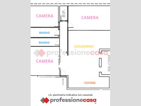 L'immobile è composto da un ampio ingresso open space con accesso ad un balcone, tre comode camere da letto, ripostiglio e due bagni.