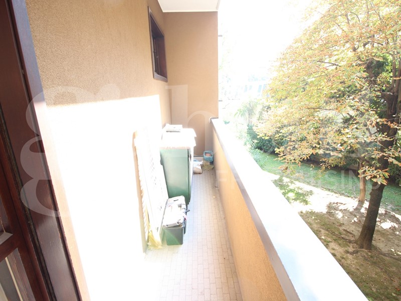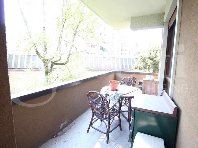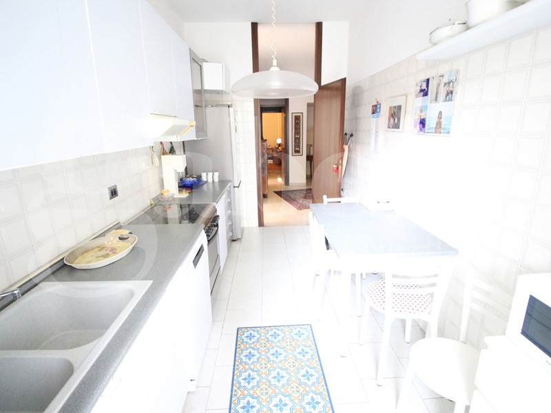 ? Ampio trilocale con cucina abitabile e soggiorno luminoso, entrambi affacciati su un grande terrazzo angolare con vista sul verde.