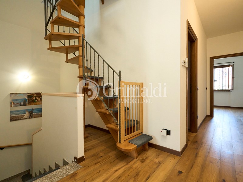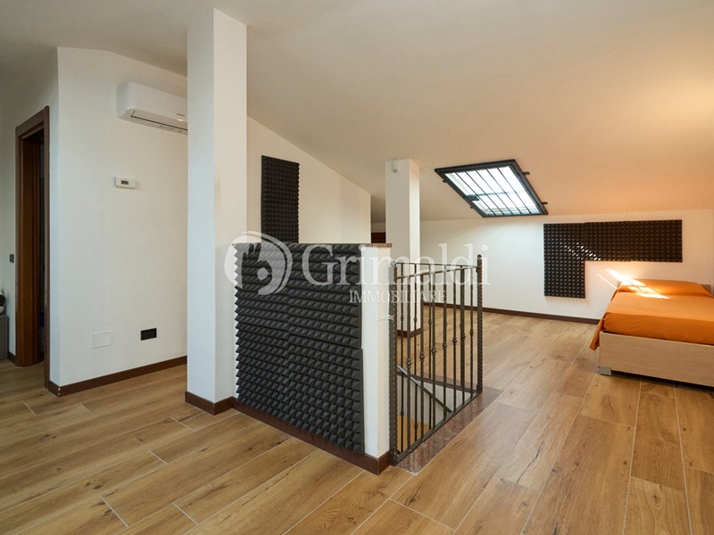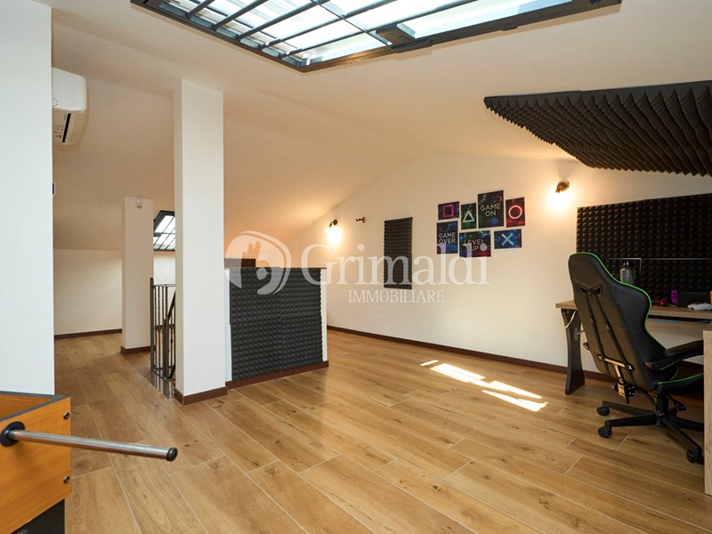 La casa ha un ingresso esclusivo su di un atrio signorile che conduce all'abitazione la quale si sviluppa su più livelli e offre ambienti luminosi, funzionali e dal design contemporaneo. La soluzione si compone di ampio soggiorno con cucina abitabile con altezze elevate che inonda lo spazio di luce naturale, il piano è completo di un bagno con vasca. Il giardino è comodamente raggiungibile dalla cucina, spazio esterno ideale per pranzi e cene in compagnia in totale relax e privacy. Tramite scala interna si accede al primo piano composto da tre camere di cui due con balcone e un altro bagno con doccia. All'ultimo piano abbiamo un'affascinante mansarda, parte integrante di una villetta di prestigio, rappresenta una rara opportunità per chi cerca uno spazio esclusivo, ricco di potenziale e adatto a molteplici usi. Grazie alla sua disposizione open space e al bagno privato, la mansarda è un luogo ideale per chi desidera indipendenza, comfort e stile, senza rinunciare alla bellezza e alla tranquillità di un contesto residenziale raffinato. Completa la soluzione un ampio box doppio situato al piano interrato e collegato direttamente alla cantina della casa.