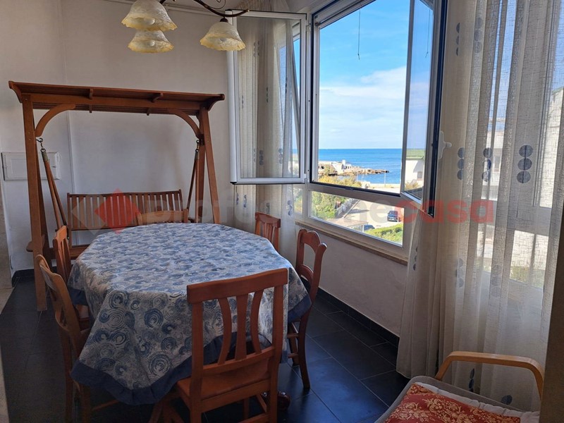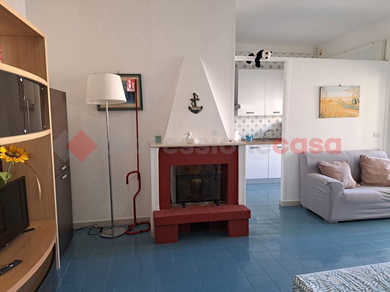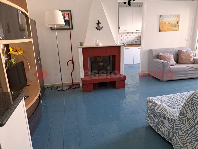 Ingresso con soggiorno a vista con camino e affaccio su veranda vista mare, ampio cucinino , bagno con doccia , 2 vani letto e ripostiglio .