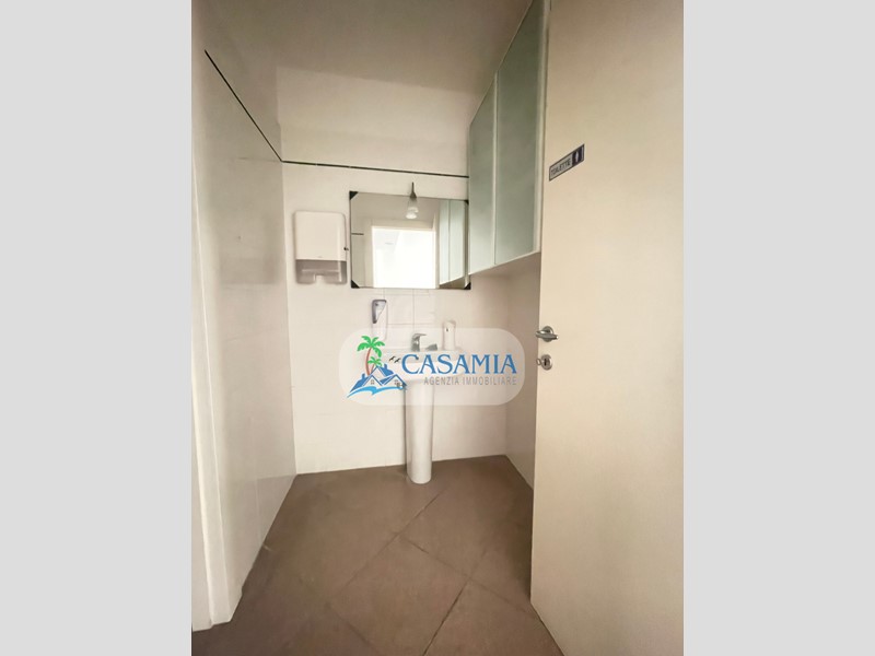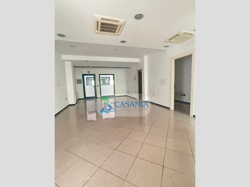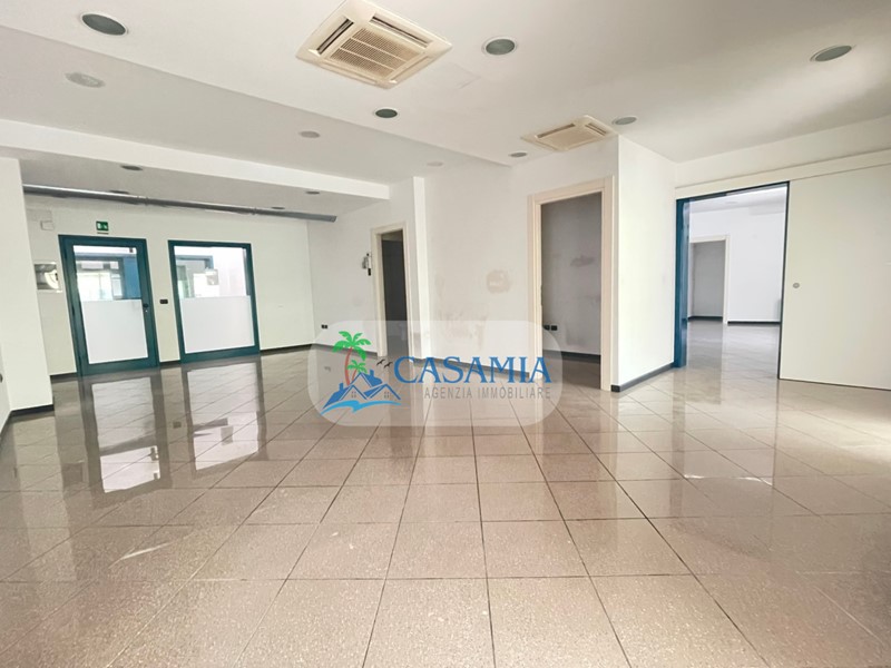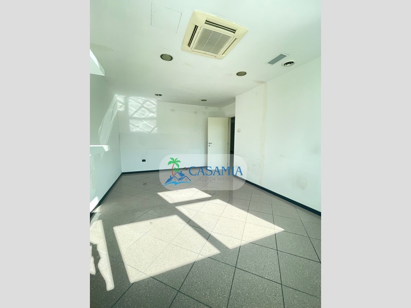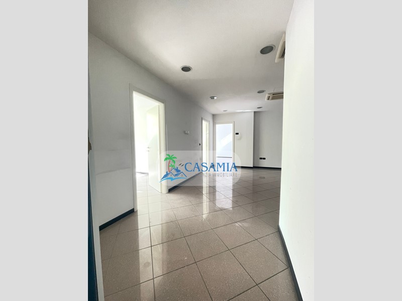 In elegante complesso commerciale e direzionale visibile sulla statale 16, ampio e luminoso ufficio posto al piano 1° servito da ascensore. L'immobile ha una superficie coperta di circa 107 mq, gode di esposizione a ovest, è dotato di vetrine visibili su strada e si compone un ampio vano all'ingresso, 3 uffici, un archivio/ripostiglio ed 1 bagno con anti bagno a norma per handicap.