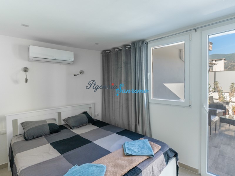 Gli interni offrono serramenti con doppi vetri e riscaldamento autonomo, garantendo comfort in ogni stagione e spese di gestione contenute. Il vero punto di forza della proprietà è la splendida terrazza di circa 60 mq, ideale per momenti di relax, cene all’aperto o semplicemente per godersi il clima mite della Riviera dei Fiori.