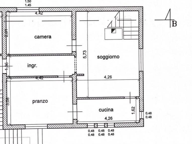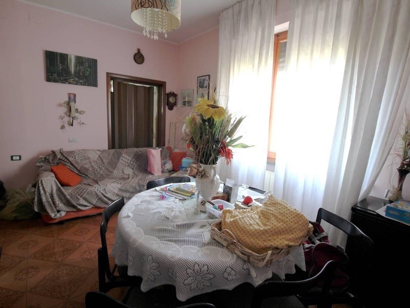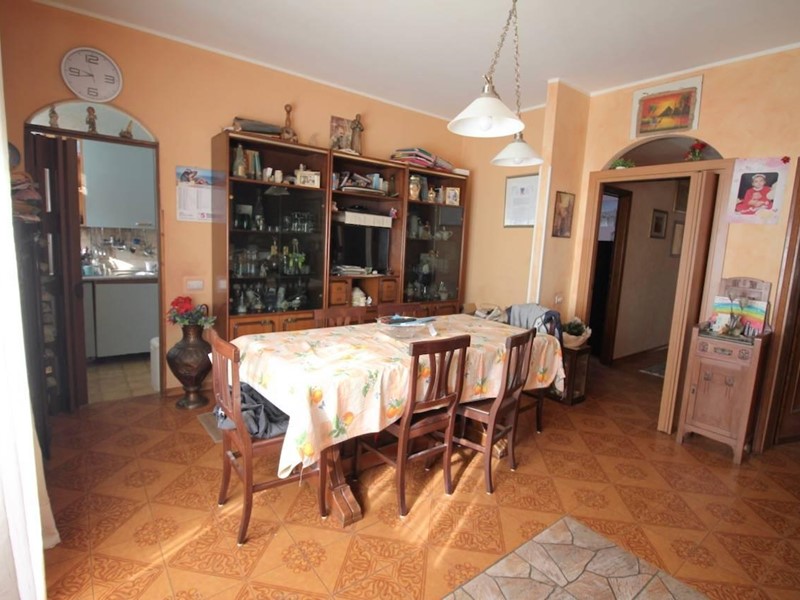 La zona giorno si compone di ingresso tradizionale, dal quale si accede sia al salotto che alla grande sala pranzo, entrambe collegate con il cucinotto, ben separato e dotato di finestra; troviamo poi un comodo ripostiglio sottoscala ed una delle tre ampie camere.