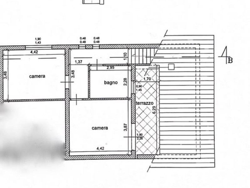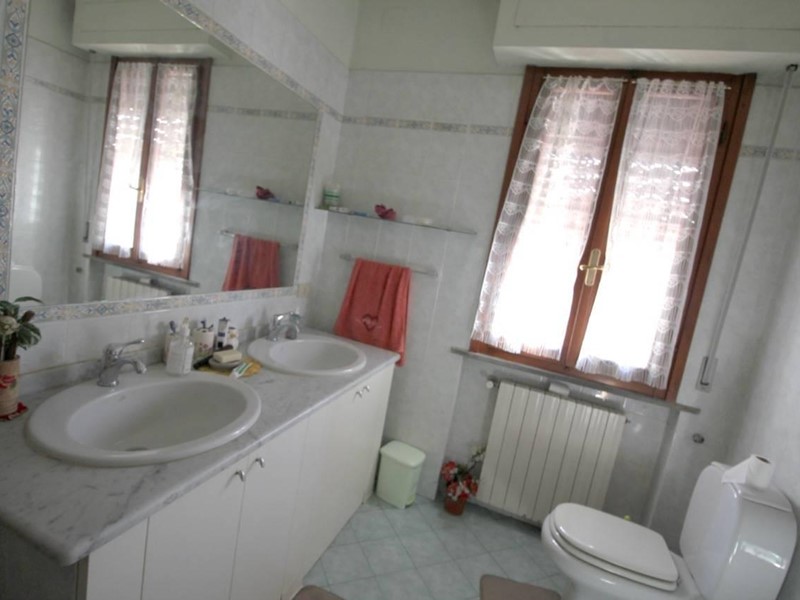 Al piano superiore il bagno, interamente ristrutturato e dotato di doccia e finestra, e le altre due grandi camere matrimoniali, di cui una con comoda terrazza a tasca ed accesso al sottotetto ad uso ripostiglio.