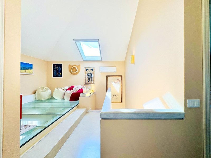 Il primo piano ospita la zona notte, composta da una camera matrimoniale, una camera media, un ulteriore bagno, un pratico ripostiglio e un secondo soggiorno/zona relax perfetto da utilizzare come studio o come spazio dedicato agli ospiti.