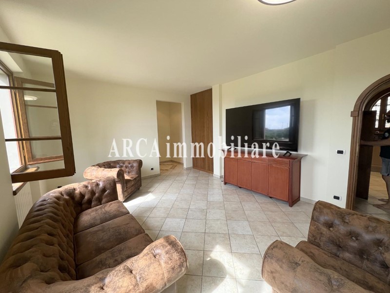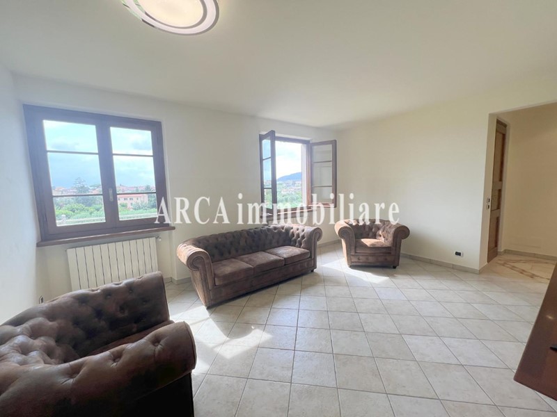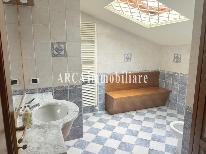 PIETRASANTA, non lontana dal centro, villa singola, rialzata rispetto al piano stradale, composta da ingresso, soggiorno, cucina-tinello con camino, portico, bagno, 2 camere matrionali di cui una con bagno privato, ripostiglio e servzio esterno al piano terra. Piano primo tutto mansardato suddiviso in più vani tra i quali locale lavanderia, bagno e locale termo. e altri 4 vani. Garage (40 mq.). Giardino con 2 accessi carrabili.
