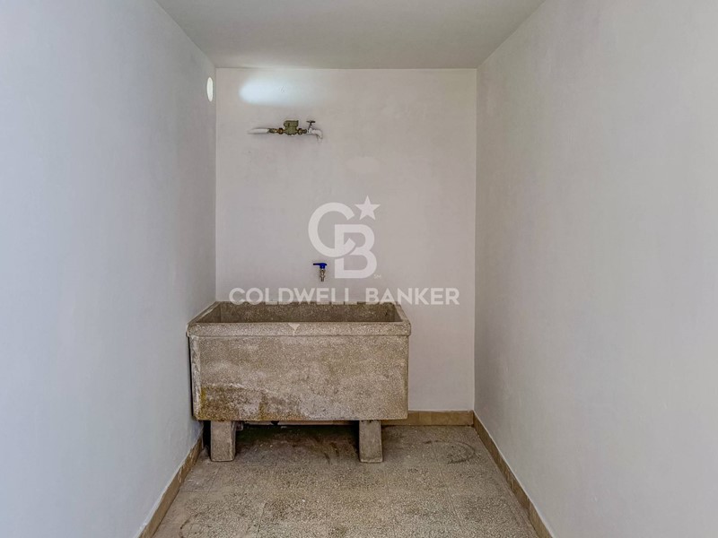 Dall'ingresso si accede da un disimpegno che introduce a un luminoso soggiorno con affaccio sulla strada principale, ma in posizione arretrata che garantisce riservatezza. La cucina abitabile, già arredata con piano cottura, tavolo e sedie, è affiancata da una pratica zona lavanderia con lavatrice. La zona notte si compone di tre ampie camere da letto e di un bagno finestrato con sanitari nuovi.