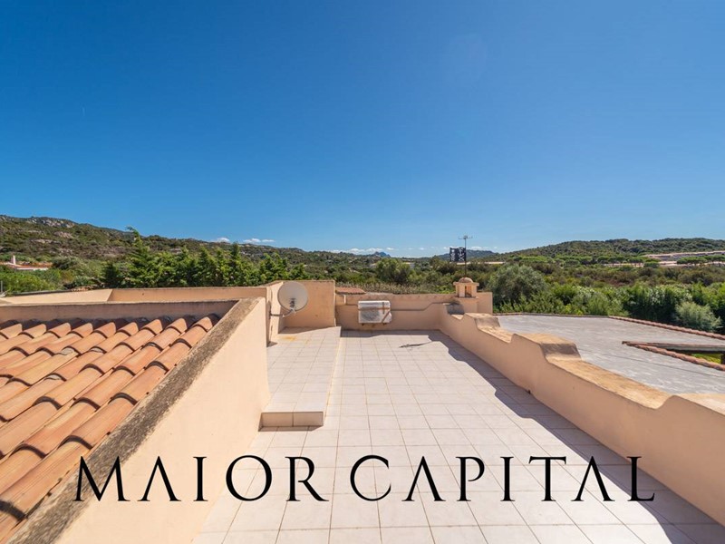 Un altro plus della proprietà è il grande solarium vista mare, accessibile tramite scala esterna, da cui si può godere di una vista panoramica incantevole sul paesaggio circostante e sul mare della Costa Smeralda.