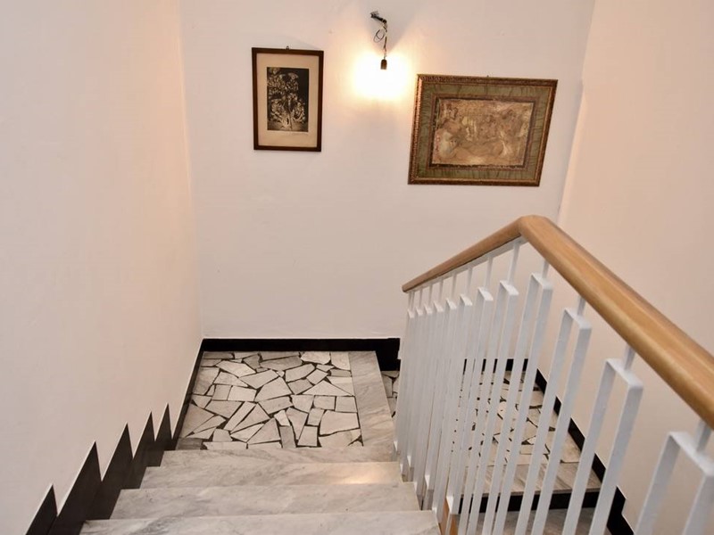 Al piano terra si trovano un ampio salone doppio con camino, cucina abitabile, lavanderia e bagno. Il primo piano ospita cinque locali e un secondo bagno, con accesso a una balconata vivibile.
