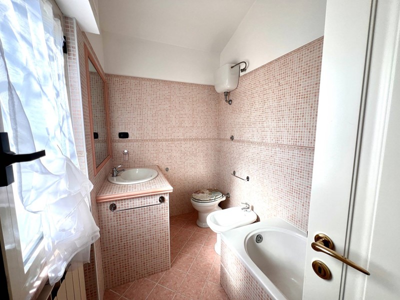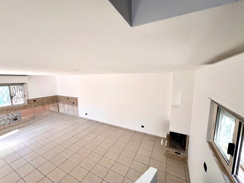La zona giorno al piano terra è accogliente e luminosa, con un ampio open space con cucina a vista e camino. Completa il piano un pratico bagno con doccia e un angolo lavanderia funzionale.