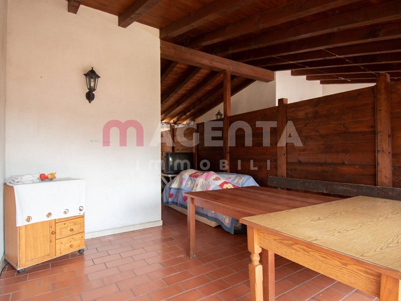 L'ingresso principale accede al giardino frontale privato e ad uno splendido portico esterno ideale per trascorrere piacevoli momenti all'aperto, internamente troviamo un luminoso soggiorno.