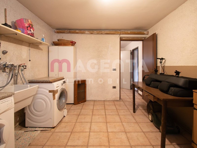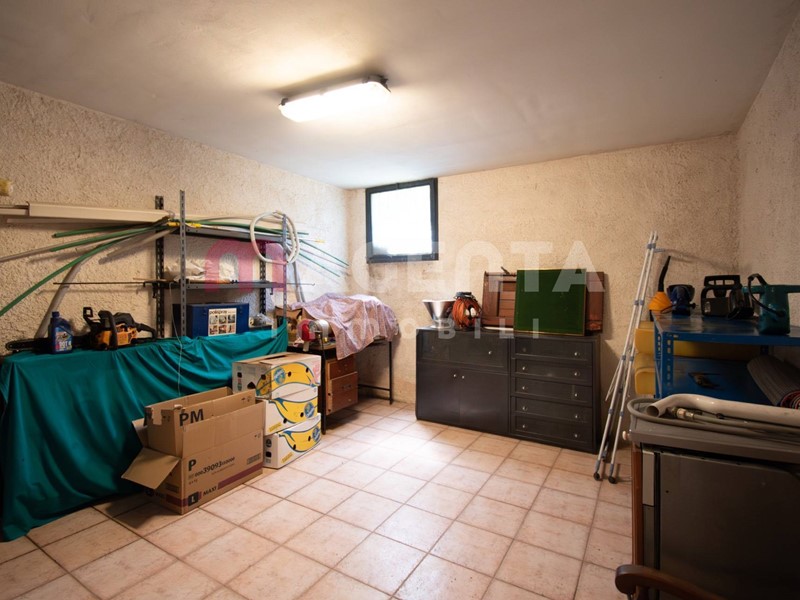 Dispone inoltre di un seminterrato generoso dove trovano posto ulteriori due stanze da utilizzare come sala hobby/taverna, una lavanderia con uscita diretta sul giardino retrostante la casa e un grande garage privato, dove è possibile parcheggiare comodamente una vettura e riporre oggetti e attrezzature.