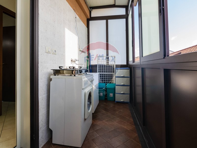 corridoio con accesso a un balcone in parte verandato, dove è stata realizzata la lavanderia, e collegamento al sottotetto;