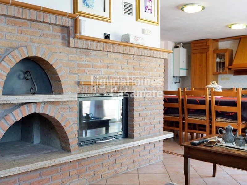 Disposta su due livelli, la proprietà in vendita a Cipressa si trova in una posizione strategica che le garantisce tranquillità e privacy. Al piano superiore si trova la parte abitativa, composta da una luminosa zona giorno con cucina a vista, che si apre sul grande terrazzo che percorre tutto il perimetro dell'abitazione, rendendolo uno spazio ideale per godere di pranzi e cene all'aperto, due camere da letto ed un bagno completano questo piano. Al piano terra invece, è presente una grande taverna composta da zona giorno con cucina a vista, salotto con camino e forno a legna, una camera da letto ed un bagno, il tutto collegato al garage di generose dimensioni.