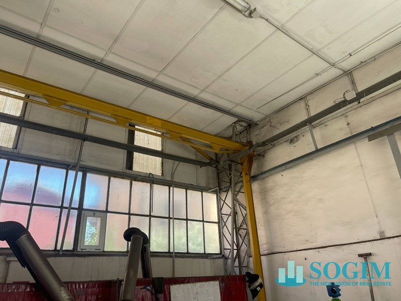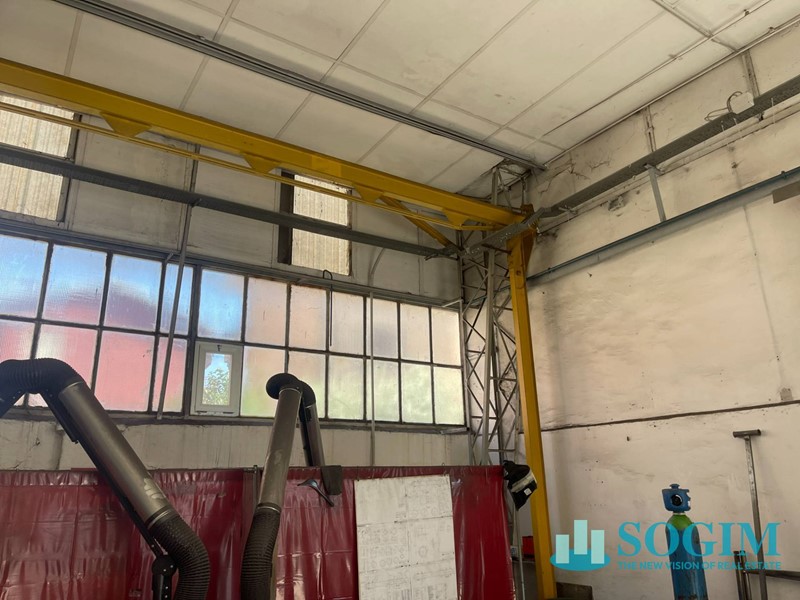 L'immobile è composto da campata unica di mq. 414 con mq. 50 di uffici, non c'è presenza di amianto sul tetto e l'altezza sotto tiranti è di mt 5.5 .
