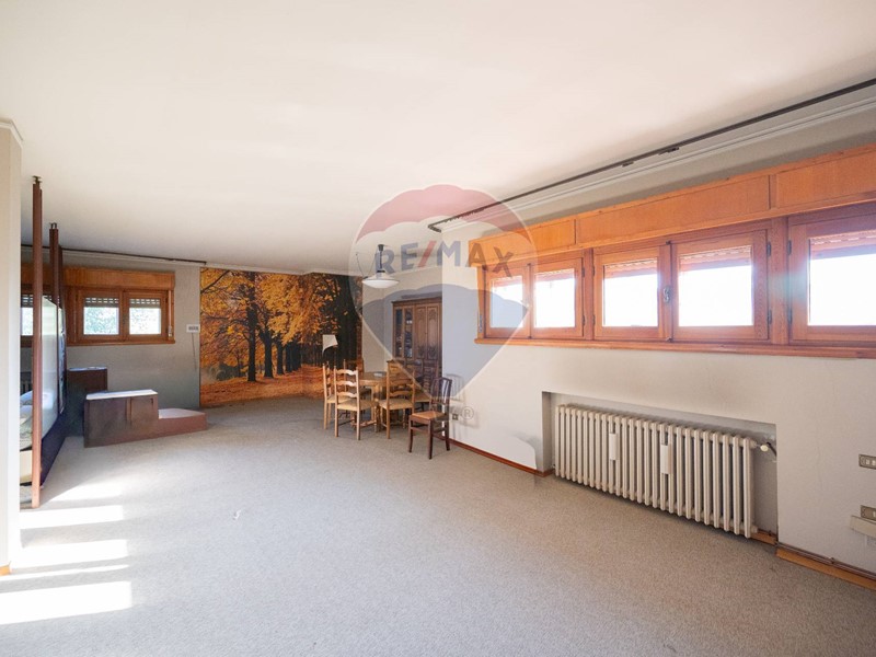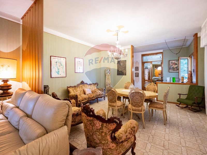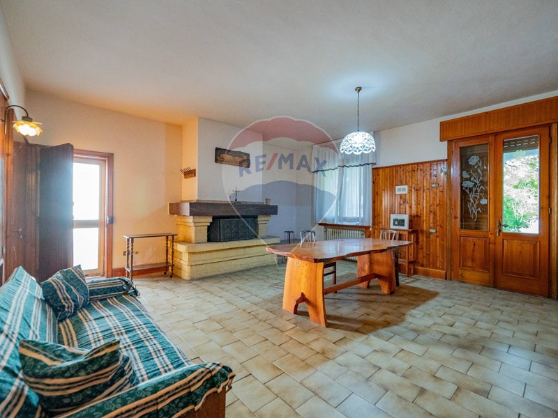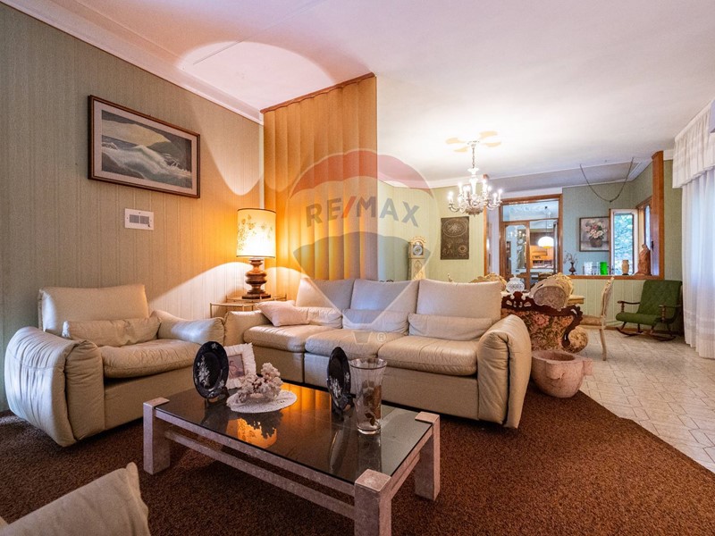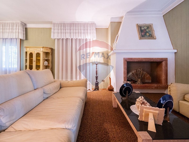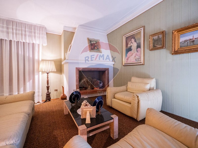 Un soggiorno che sembra abbracciarti, con vetrate affacciate sul verde e un camino pronto a scaldare le serate più fredde.