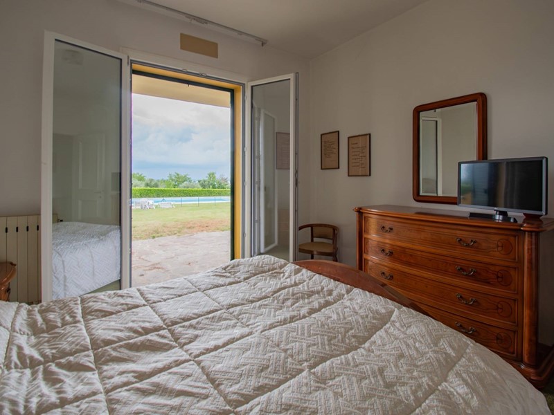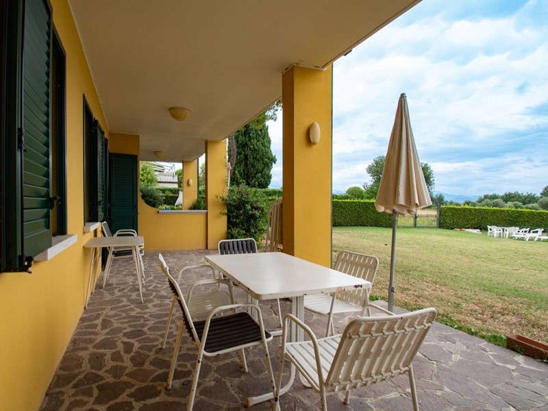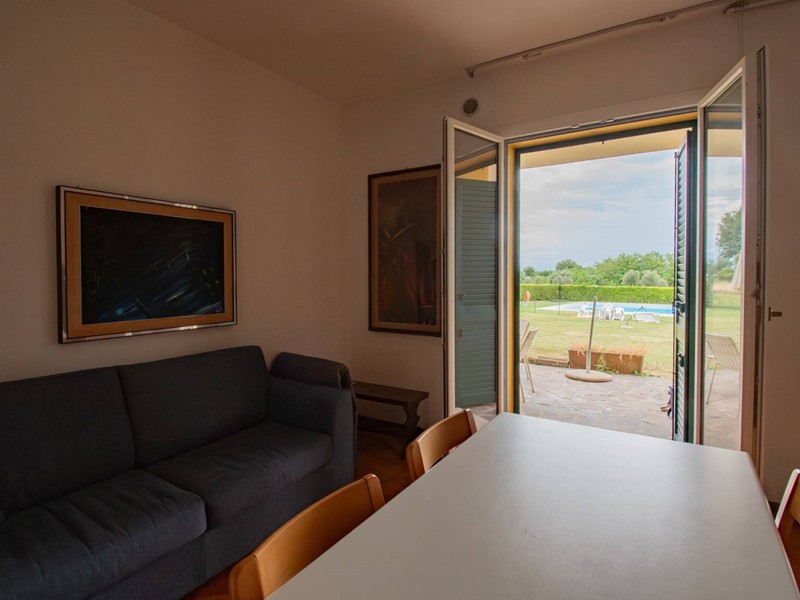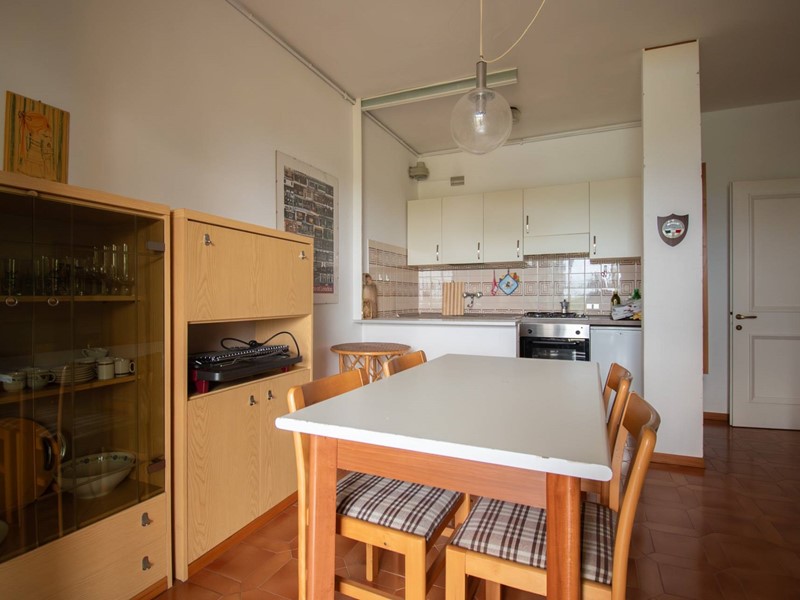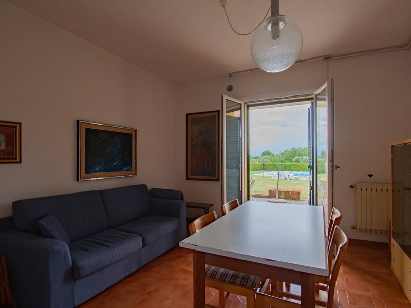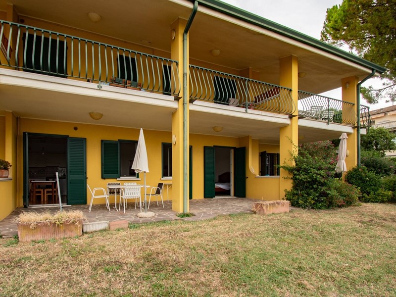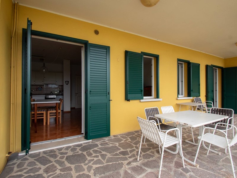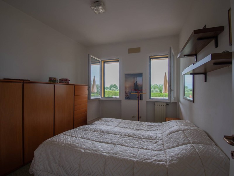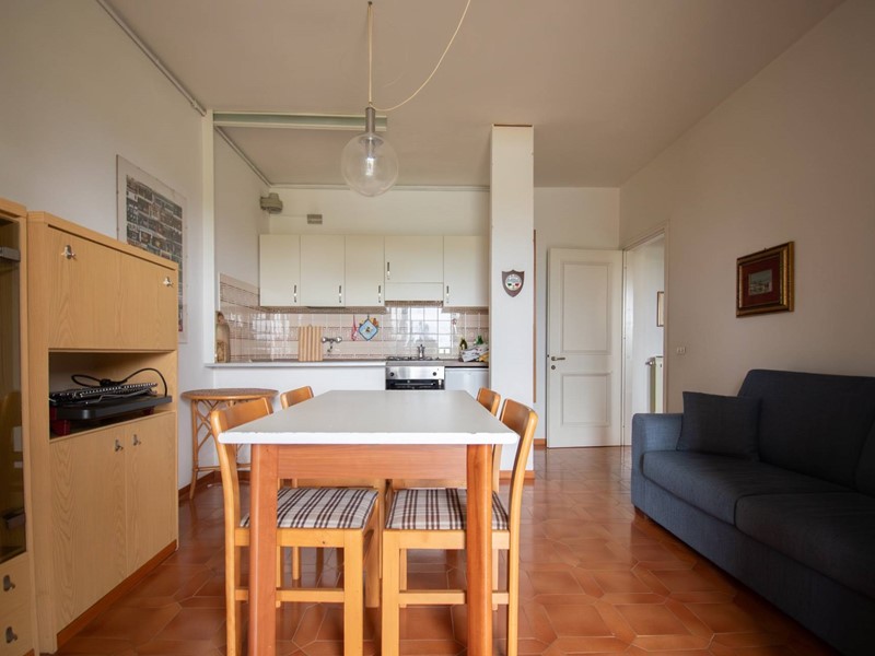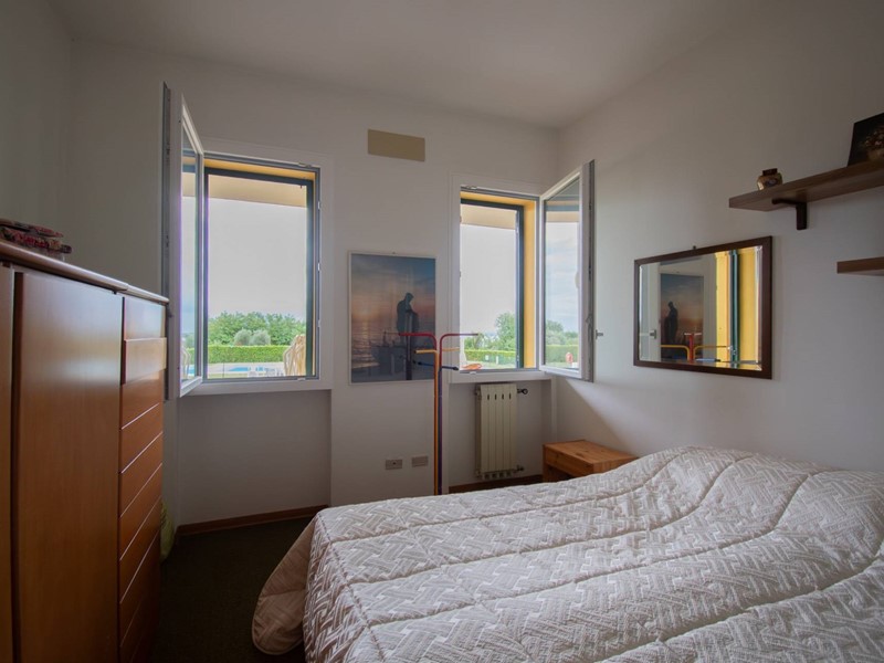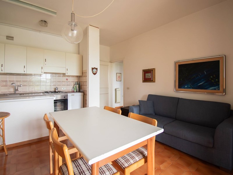 La soluzione è composta da un soggiorno con angolo cottura, due camere da letto, un bagno con doccia ed un ampio portico con uscita diretta sul giardino e sulla piscina condominiale.