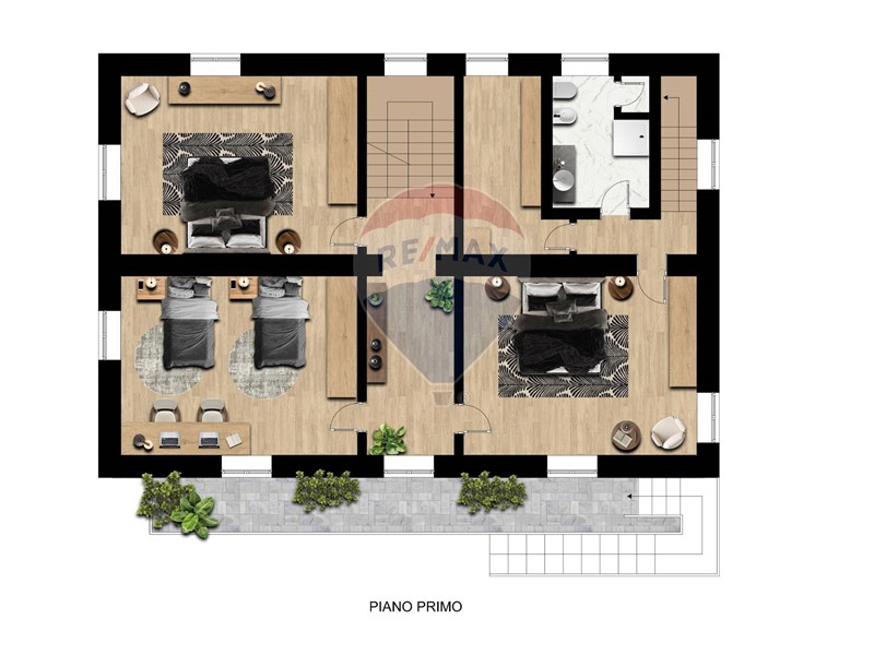 Piani superiori: dal primo piano si accede ai 2 piani superiori (uno dalla scala principale, uno dalla scala adiacente alla cucina) dove troviamo locali camere da letto ampie e luminose, con soffitti alti e travi a vista, ulteriori ambienti da adibire a studio, camere per ospiti o zone relax.