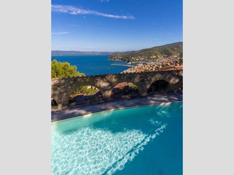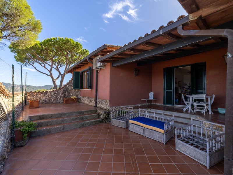 L'unicità della proprietà è data dallo spazio esterno: una grande terrazza offre un panorama mozzafiato su tutto il paese, e la costa maremmana che spazia da Talamone ad Ansedonia, una comoda corte d'ingresso pavimentata che offre anche un piacevole angolo barbecue e un giardino pianeggiante che vanta piante tipiche mediterranee ed alberi ad alto fusto. Il panorama spettacolare si gode anche da dentro casa, oltre che dagli spazi comuni.