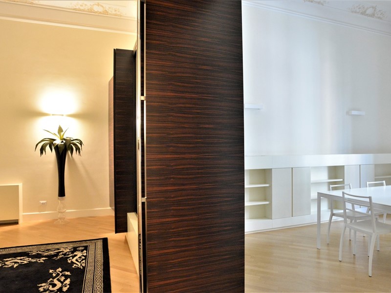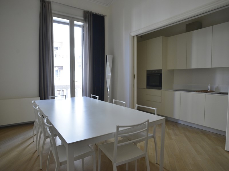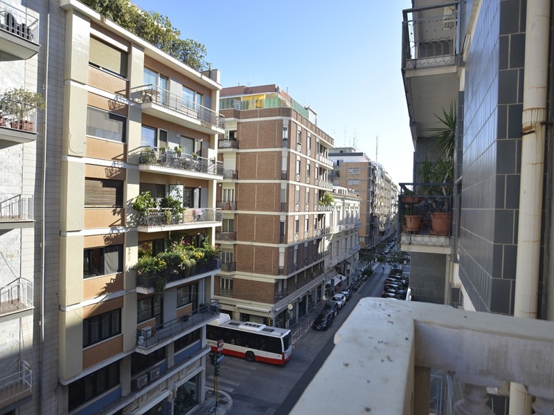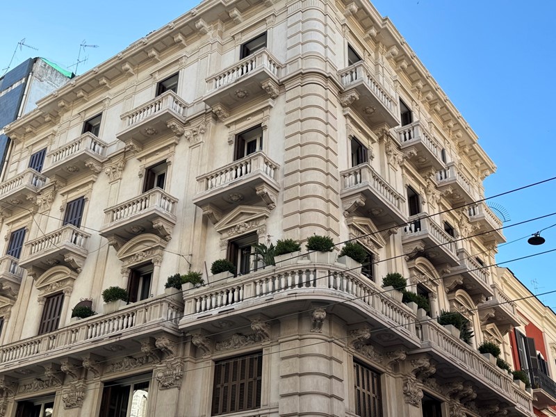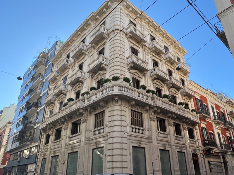 Nella affascinante cornice di "Palazzo Baratelli", splendido esempio di stile liberty, in Via Roberto da Bari in angolo con Via Principe Amedeo, nella zona murattiana. L'elegante taglio dell'appartamento appare non appena varchiamo la soglia e veniamo accolti dal raffinato salotto, diviso, da una quinta architettonica in palissandro, dall'ampio soggiorno affacciato su Via Principe Amedeo. La cucina è nascosta agli sguardi dalla porta scorrevole in legno. La zona notte è ben disimpegnata ed è composta da 2 camere da letto, una affacciata con un balcone su Via Principe Amedeo e l'altra con un altro balcone all' interno. I bagni sono due e la lavanderia è molto comoda e completa di lavatrice ed asciugatrice. L'appartamento ha le volte alte mt. 4,20, decorate dagli stucchi ed è luminoso. E' in ottime condizioni. La porta è blindata; il riscaldamento è autonomo; è provvisto di impianto di climatizzazione e di Wi Fi.