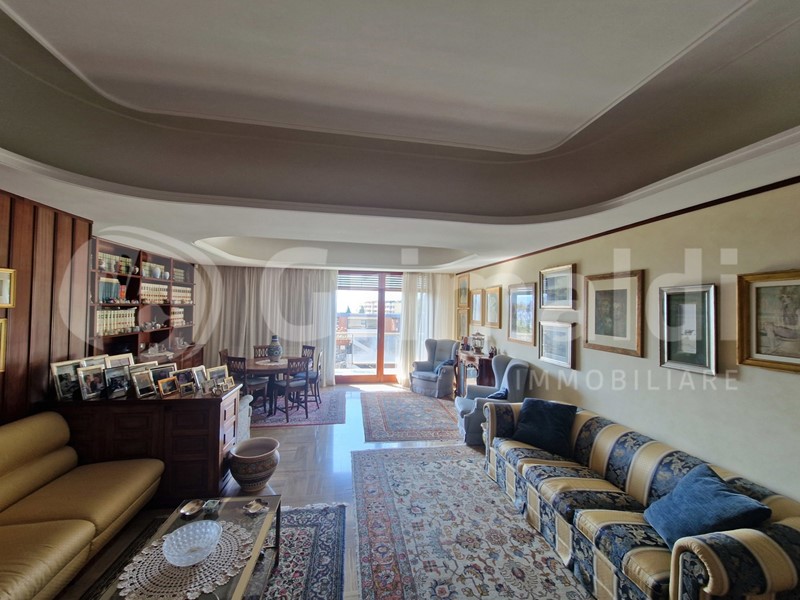Via Nuova Panoramica all'interno del prestigioso complesso Parnaso disponibile al secondo piano elegante appartamento con doppio ingresso e composto da ampio salone, quattro comode camere, cucina camera di servizio e lavanderia, due bagni, due comodi balconi. La proprietà è completata da una comoda cantina soppalcata ed posto auto, oltre una ampia zona a parcheggio per ospiti.