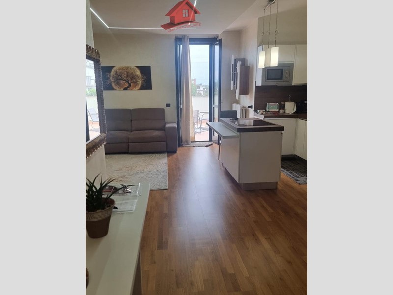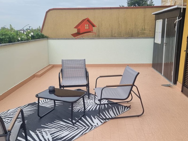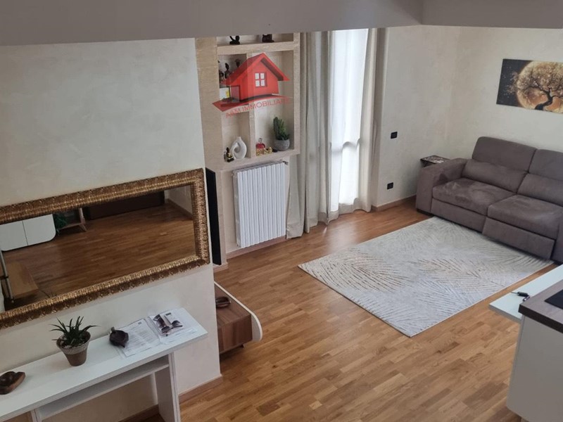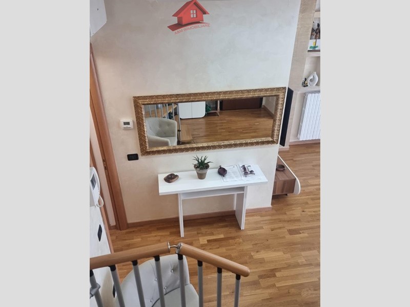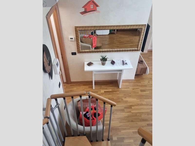 Trilocale di circa 95 mq, ingresso su ampio e luminoso soggiorno e cucina open space, dal quale si accede ad un ampio terrazzo, disimpegno, camera matrimoniale, bagno con doccia. Tramite scala interna si accede al locale sottotetto con seconda camera e bagno con doccia.