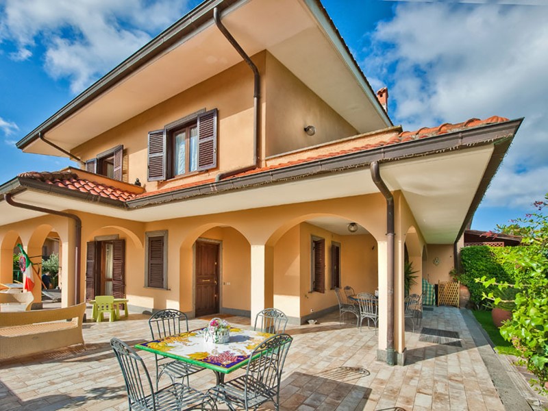 La villa, caratterizzata da una generosa metratura ed offre al piano terra un elegante salone, una spaziosa cucina abitabile con camino, una camera da letto e un bagno. Da qui, si accede direttamente al curato giardino che circonda la proprietà.