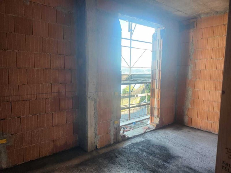 La Spezia località Marola vendesi appartamento con ingresso indipendente da giardino privato recintato di 115 mq, soggiorno con cucina a vista, disimpegno con due camere e servizio. Abitazione in corso di costruzione con consegna previstra nell'estate 2026 con possibilità di personalizzare le rifiniture interne, vista mare, garage privato, compreso nel prezzo, cantina davanti ingresso abitazione, ascensore. Fermata corriere da e per Portovere e centro La Spezia sotto casa. Riscaldamento a pavimento. Pannelli solari.
