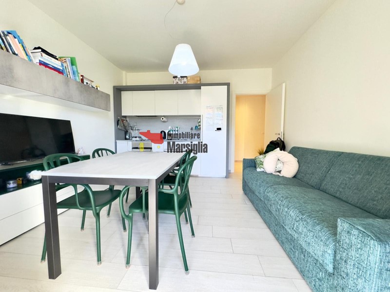 L'immobile, recentemente ristrutturato, è composto da un ingresso su corridoio che ci accompagna al soggiorno con cucina a vista, una camera da letto matrimoniale ed infine un bagno con finestra. Due terrazzi vivibili di cui uno con vista sul mare. Il riscaldamento è centralizzato con termovalvole. Completa la proprietà una spaziosa cantina al piano terra. Area di posteggio condominiale.