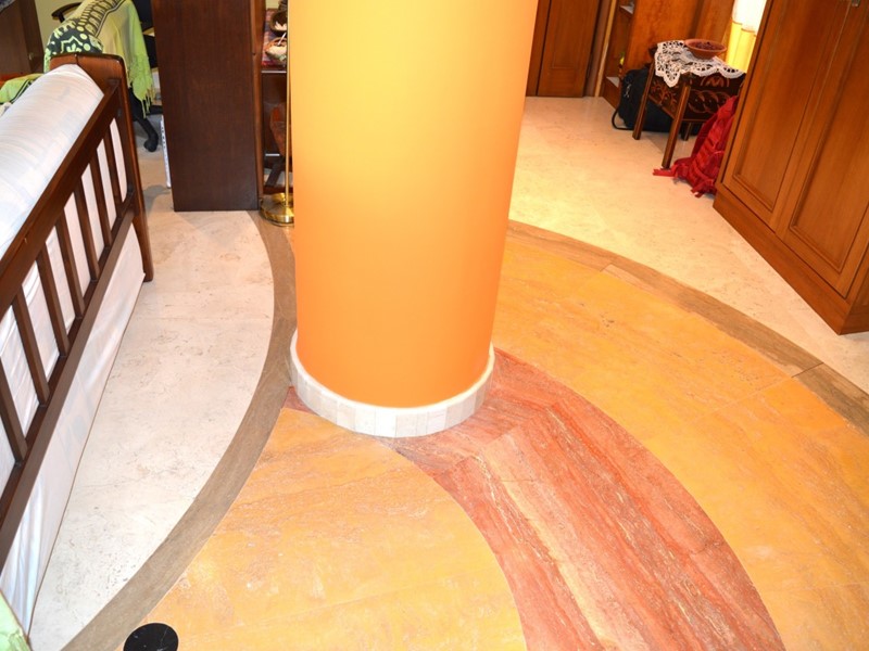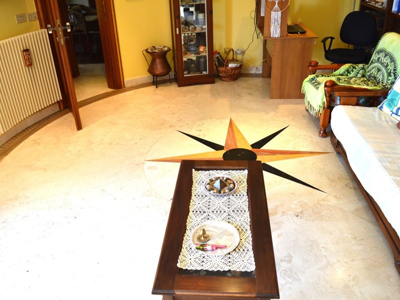 Appartamento in eccellenti condizioni d'uso, costantemente manutenuto. Il suo interno, è stato rivoluzionato e personalizzato in modo creativo, rendendolo di fatto unico nel suo genere, con la posa di preziosi pavimenti in travertino, intarsiati in granito e marmo, bagni in marmo e granito, zona notte pavimentata con parquet, intarsiato in travertino e marmi.