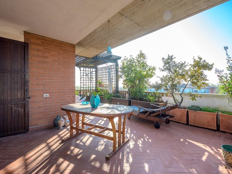 L'ampio terrazzo perimetrale circonda l'attico, rendendo ogni ambiente connesso con l’esterno e offrendo una vista aperta sul verde circostante. Uno spazio esterno ideale per chi ama vivere all'aperto, senza vicini sopra o di fianco.