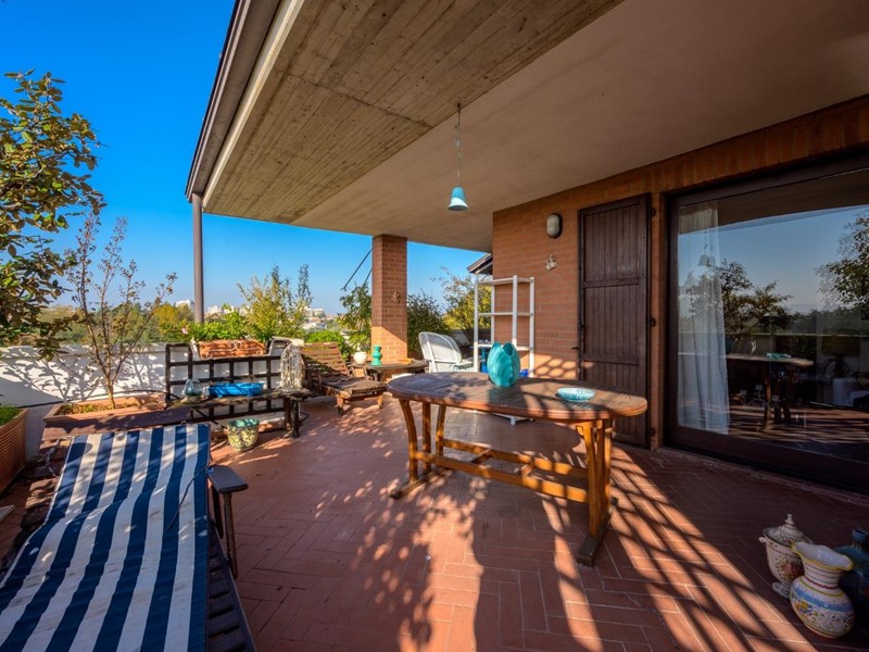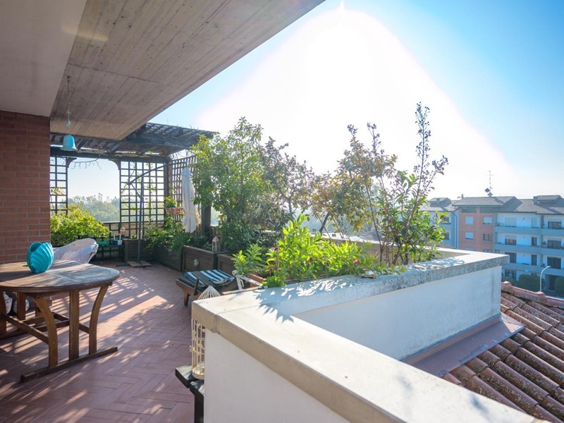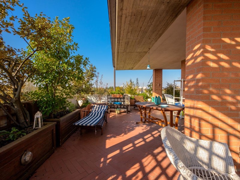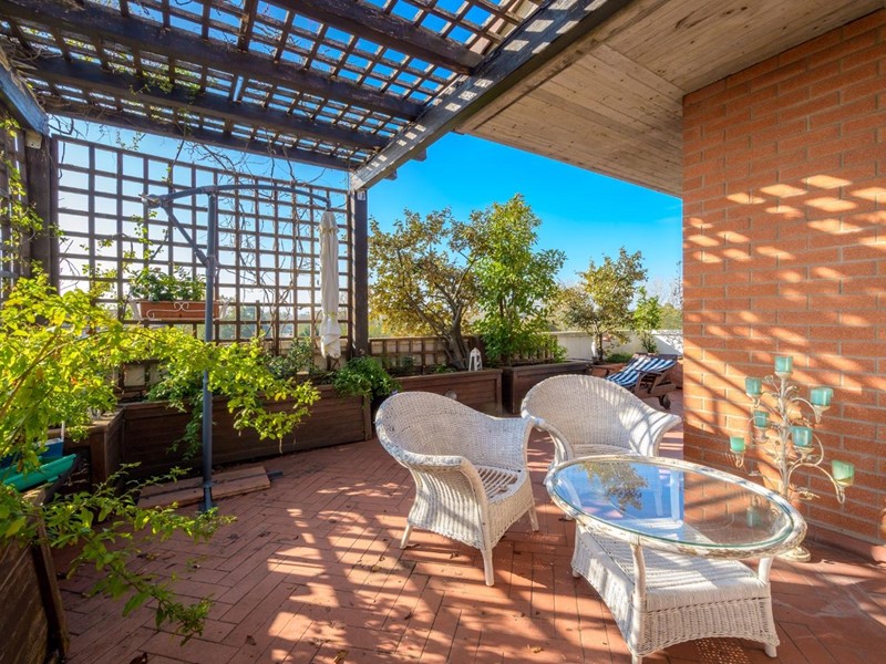 Scopri la rara bellezza di questo attico unico, circondato dal verde di un ampio terrazzo che abbraccia l’intero perimetro dell’immobile, donando luce, stile e privacy a ogni ambiente.