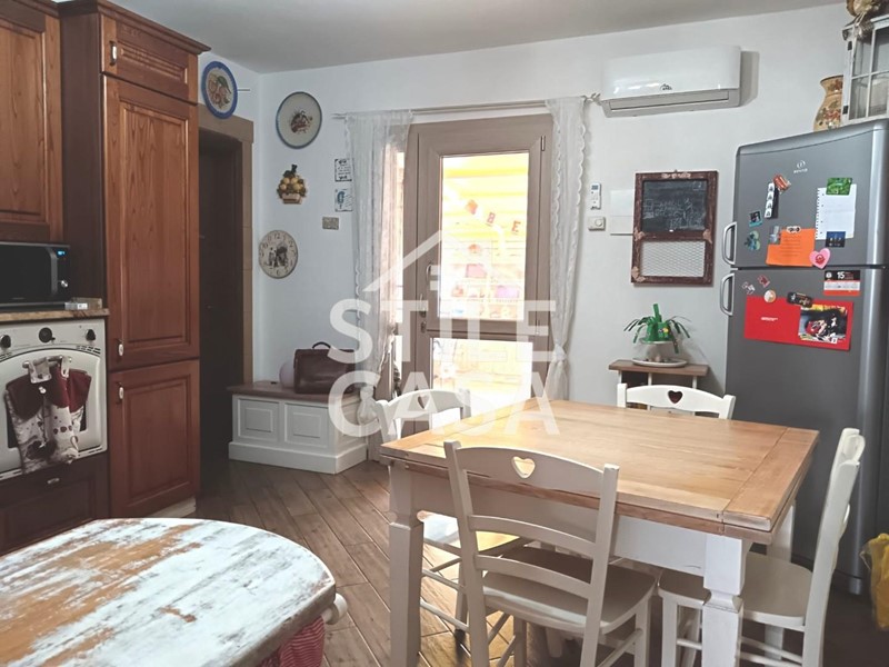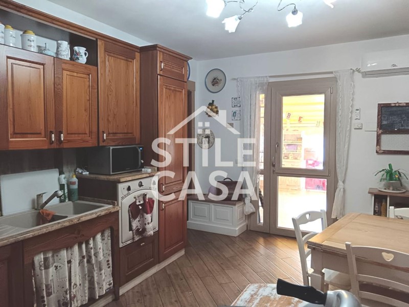 Piano terra: ingresso su soggiorno luminoso, cucina abitabile con accesso diretto alla veranda, una spaziosa camera matrimoniale, antibagno e bagno finestrato con doccia.