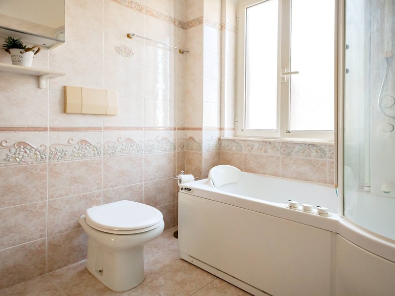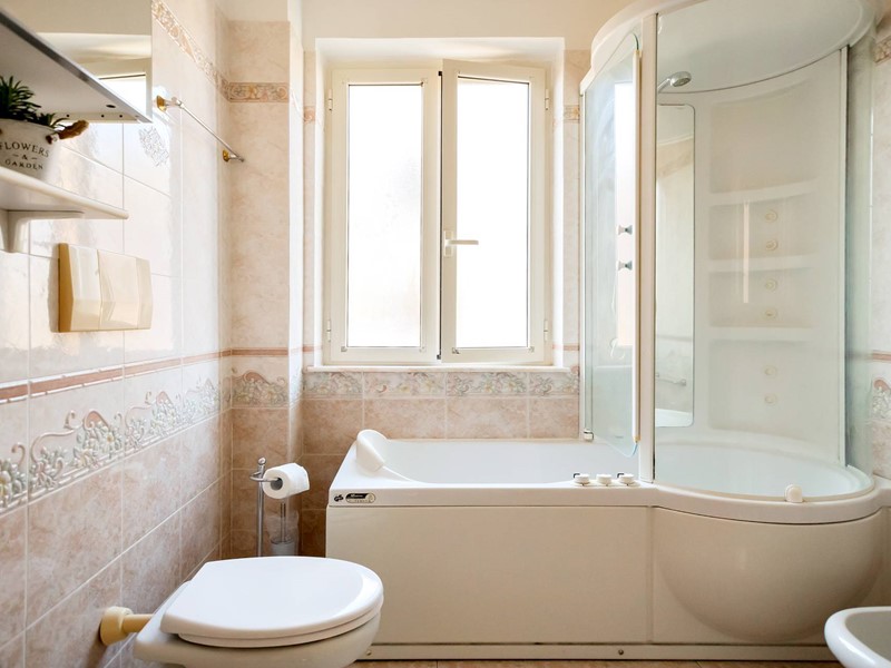 Un bagno con doccia completa l'area notte. Inoltre, l'immobile dispone di due ampi terrazzi, ideale per godersi momenti di relax all'aria aperta.