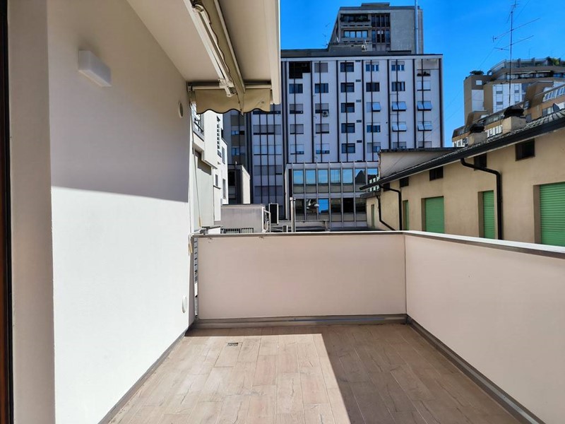 terrazzo abitabile di 11 mq con pavimentazione rifatta e nuova tenda parasole.