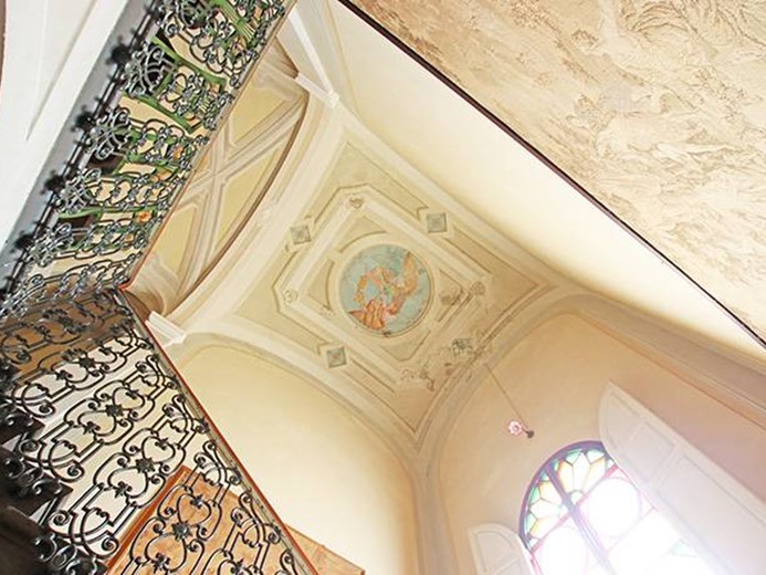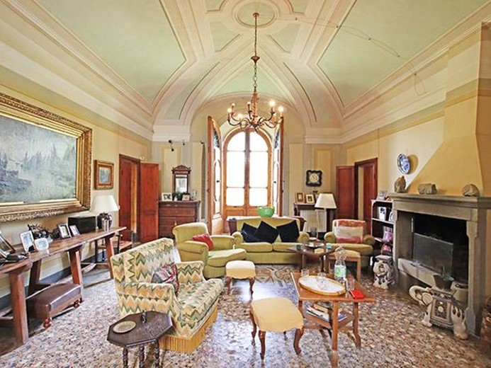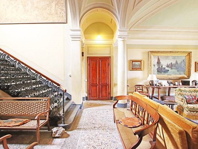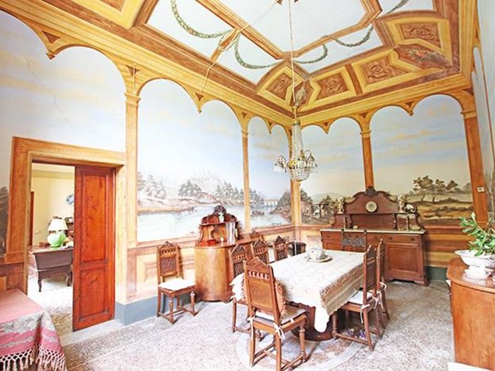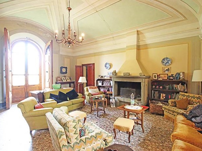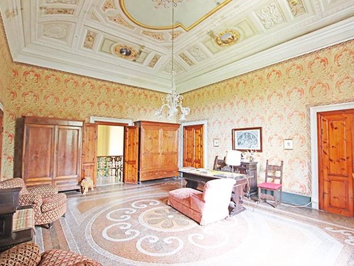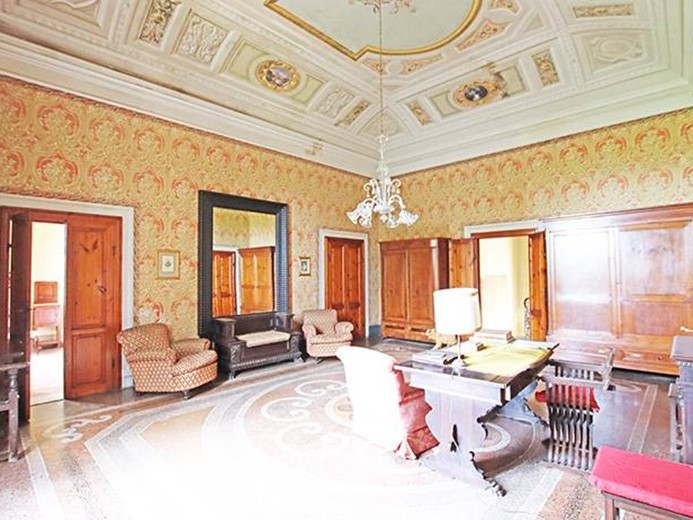 Al piano primo raggiungibile tramite un grande e scenografico scalone originale è presente un ulteriore importante salone affrescato con balcone e vista panoramica, 4 camere da letto di grandi dimensioni, 3 bagni, 2 cabine armadio.