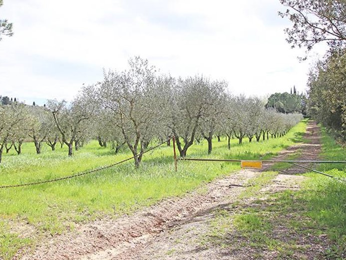 La proprietà è inoltre dotata di 23 Ha di terreno, per la maggior parte situati in corpo unico attorno al borgo ed alla villa, mentre alcuni lotti sono dislocati nelle immediate vicinanze, le attuali destinazioni dei terreni sono ultiveto per circa 22.000 mq (di cui gran parte dislocati attorno alla villa padronale), seminativo per 179.000 mq, vigneto per 10.000 mq oltre che frutteto, pasacolo ed una minima porzione di bosco.
