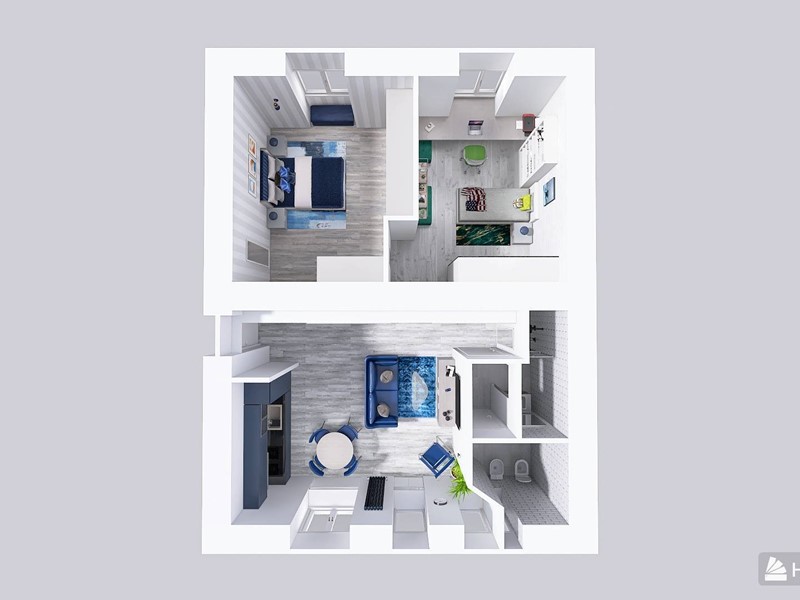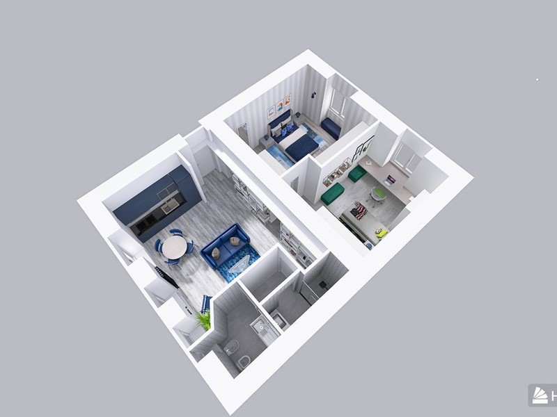 Lappartamento è composto da soggiorno, due grandi camere, unampia cucina e un bagno con doccia.
