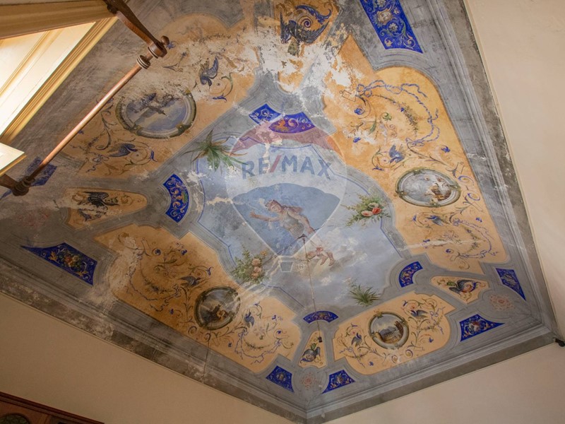 al primo piano troviamo un terrazzo a livello, la cucina, il bagno, due camere da letto, un ripostiglio un soggiorno con le volte con affresco ed un'ampia camera adibita a studio ma fruibile anche come camera da letto.