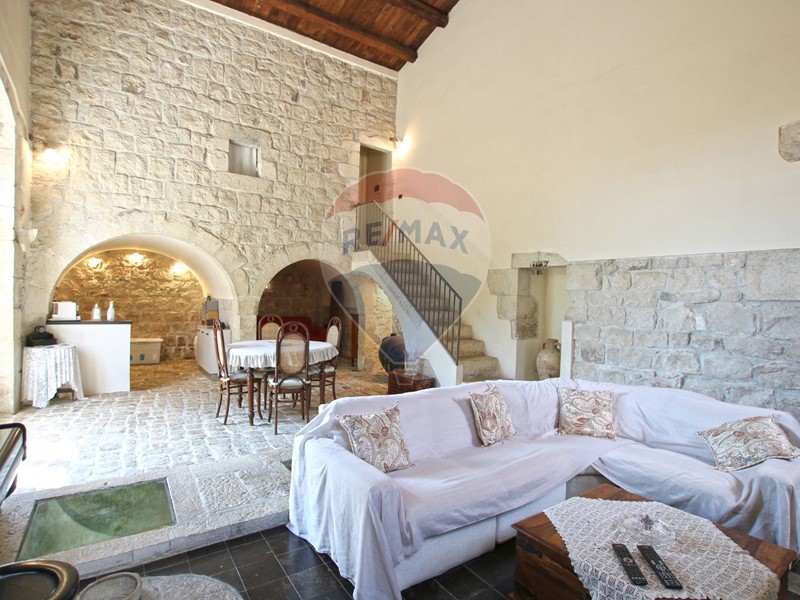 Dal secondo ingresso ci si immette in un secondo cortile che dà accesso al vecchio frantoio recuperato e ristrutturato mantenendo la pietra a vista ed il tetto in legno.