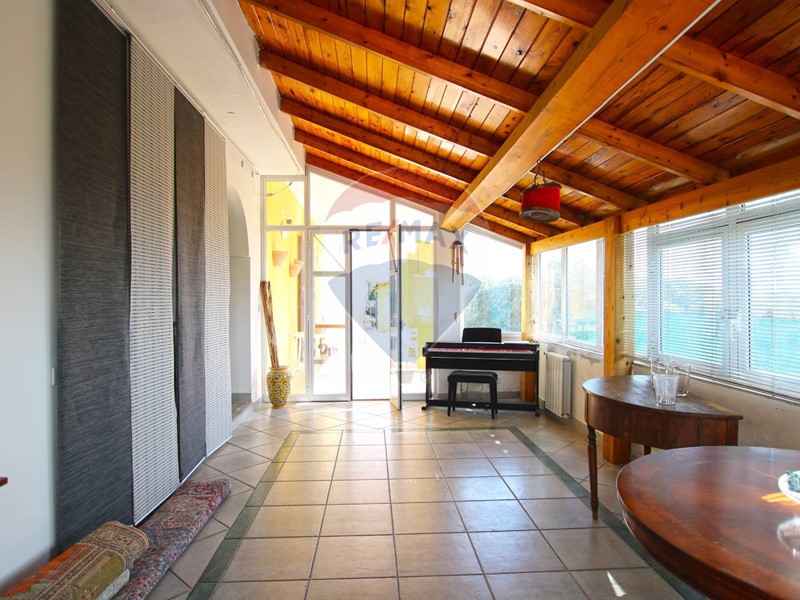 Al piano terra, attraverso una veranda chiusa, si accede al soggiorno con camino funzionante , una zona living ampia e confortevole; proseguendo troviamo la cucina abitabile con annessa lavanderia, a seguire una cameretta, il bagno principale e la camera padronale con piccola cabina armadio e climatizzatore.