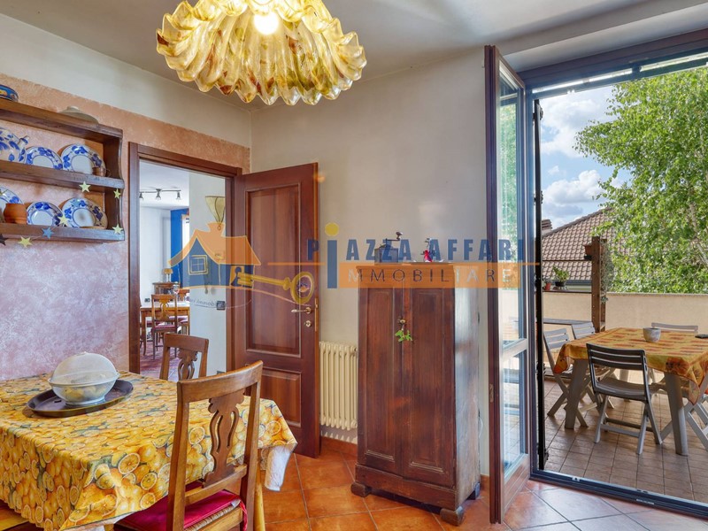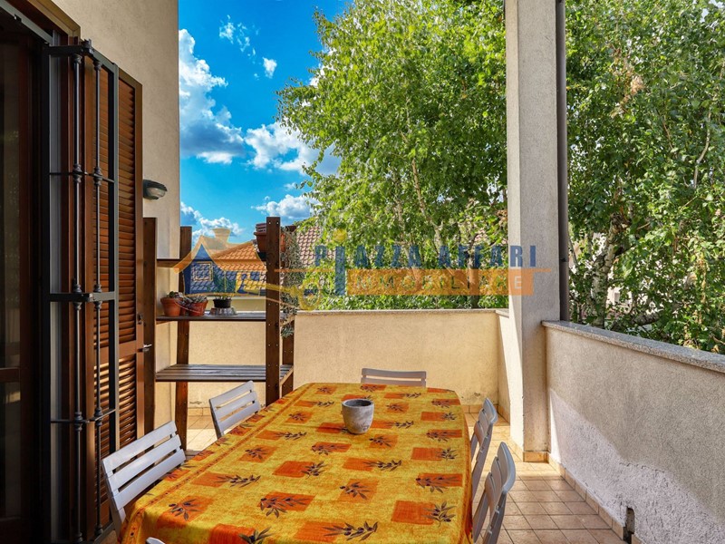 Primo piano: salendo la scala ti accoglie un ampio soggiorno doppio illuminato da grandi finestre, con uscita sul balcone e sul terrazzo coperto dove rilassarsi allaperto. La cucina abitabile invita a cene conviviali, mentre il bagno con doccia e un pratico ripostiglio completano il livello.